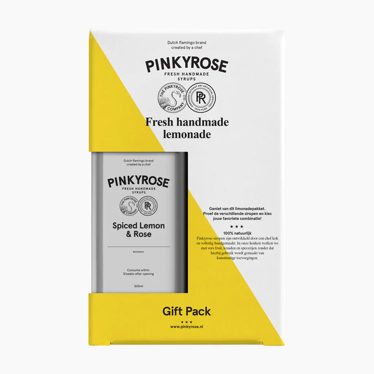 Maak kennis met onze signatuur siroop Spiced Lemon & Rose en Straight Lemon. Handgemaakt van verse ingrediënten, zonder kunstmatige toevoegingen. In deze giftpack vind je niet alleen twee blikjes vol smaak, maar ook ons receptenboekje met ideeën voor gastronomische limonades, mocktails en cocktails.