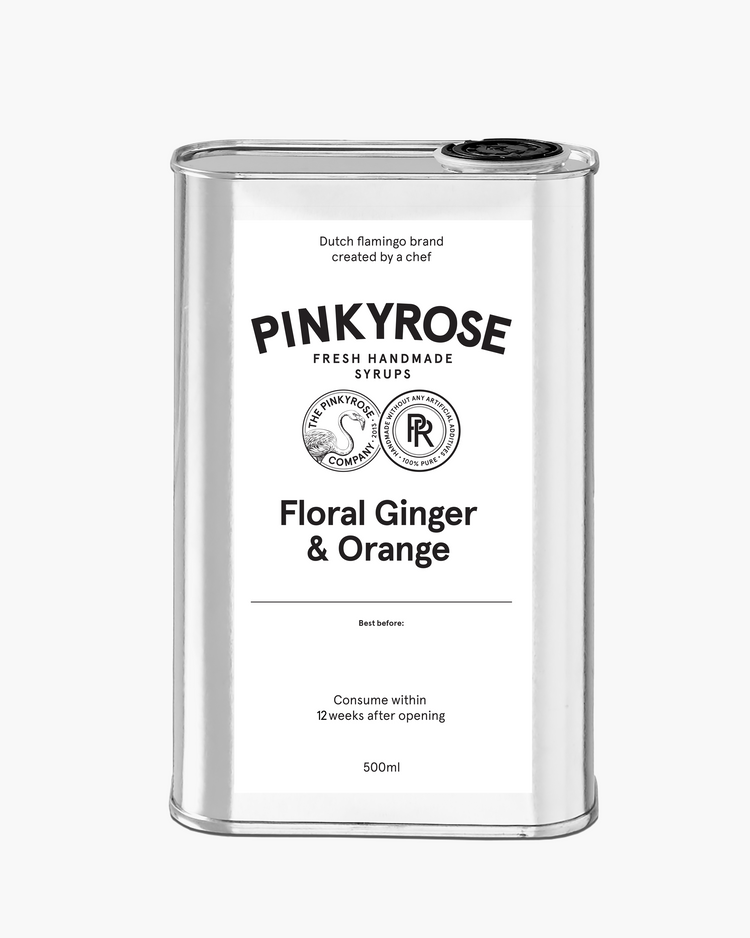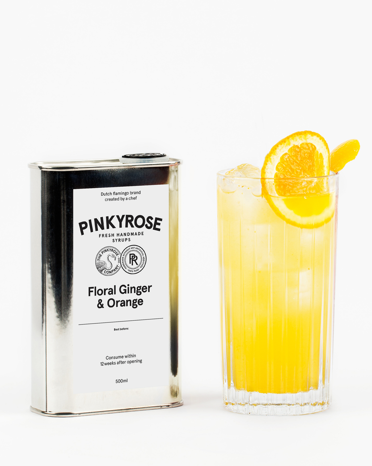 Floral Ginger & Orange is een heerlijke warme, kruidige en lichtzoete siroop gemaakt van vers citroensap, sinaasappelschil, kurkuma, diverse soorten gember, citroengras, hibiscus en peper.